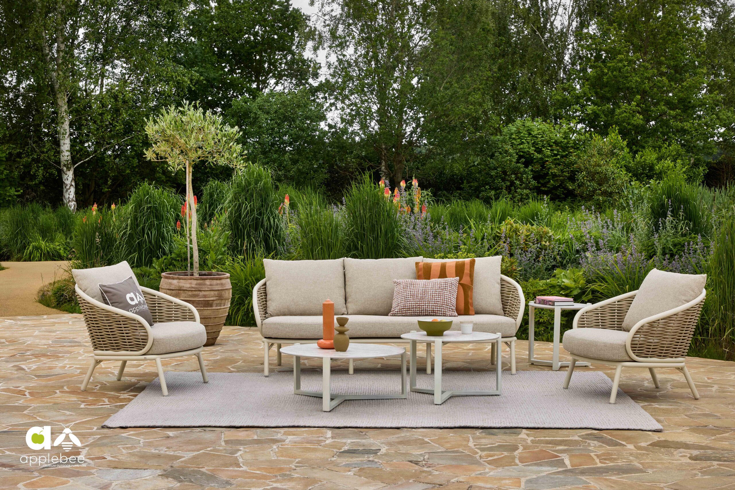 Apple Bee meubelen worden opgebouwd uit de beste materialen. Dit geldt zeker voor de kussens. Bee Wett® kussens zijn speciale weerbestendige kussens die je gewoon buiten kunt laten liggen. De afneembare hoezen worden gemaakt van stevige, wasbare stoffen. Deze stoffen zijn waterafstotend en UV-bestendig.