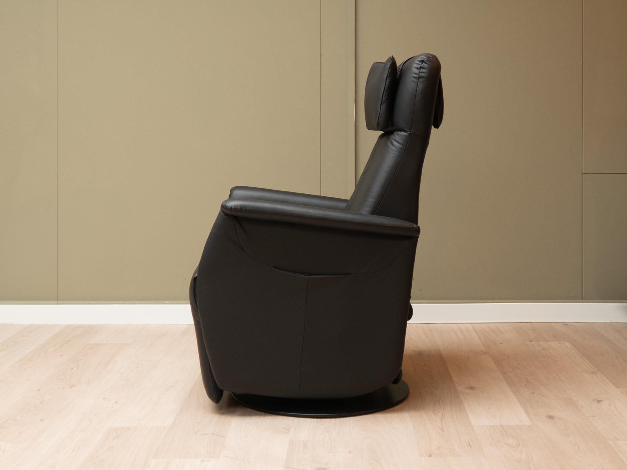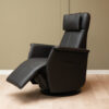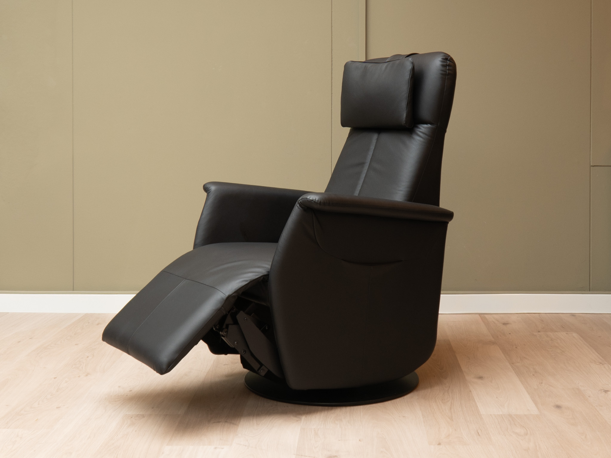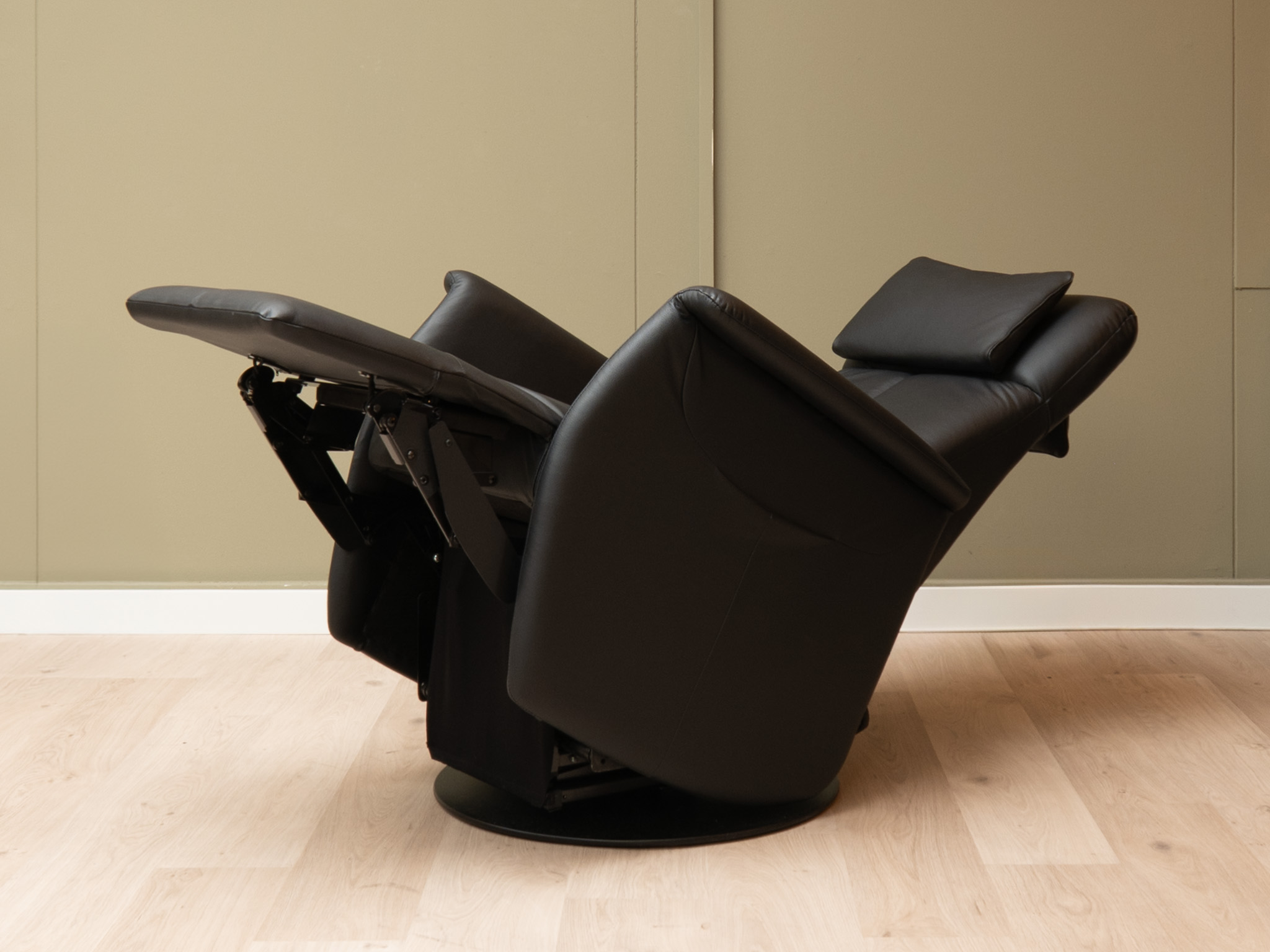Deze modern vormgegeven Wellness-fauteuil past in elk interieur. De draaischijf, uitvoerbaar in RVS en zwart metaal, zorgt voor een extra vlotte uitstraling. Optioneel kan dit model uitgevoerd worden met een wegklapbaar zijpand, waardoor de stoel uitermate geschikt is voor rolstoelgebruikers.