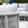 De Matera loungeset is gebouwd op een aluminium frame met een poedercoating, waardoor de set duurzaam, onderhoudsvriendelijk en weerbestendig is. Aan de achterzijde is de set prachtig afgewerkt met handgeknoopt Qualicord rope, een luxe en kleurvast materiaal dat perfect geschikt is voor buitengebruik. Dit rope geeft de set een opvallende, moderne uitstraling en benadrukt het vakmanschap van de Matera set.