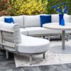 Dankzij de halfronde vorm en de trapezehoek biedt de set veel zitruimte en een optimale indeling van uw buitenruimte. Ideaal om gasten te ontvangen, lange zomeravonden door te brengen of een stijlvolle, functionele loungeplek te creëren.
