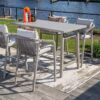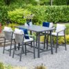 De Monti barset kan zowel als eetruimte, werk- of loungeplek worden gebruikt. De opstelling van een barset bevordert interactie en de hogere zitpositie en moderne uitstraling dragen bij aan een gezellige sfeer in uw tuin of terras.