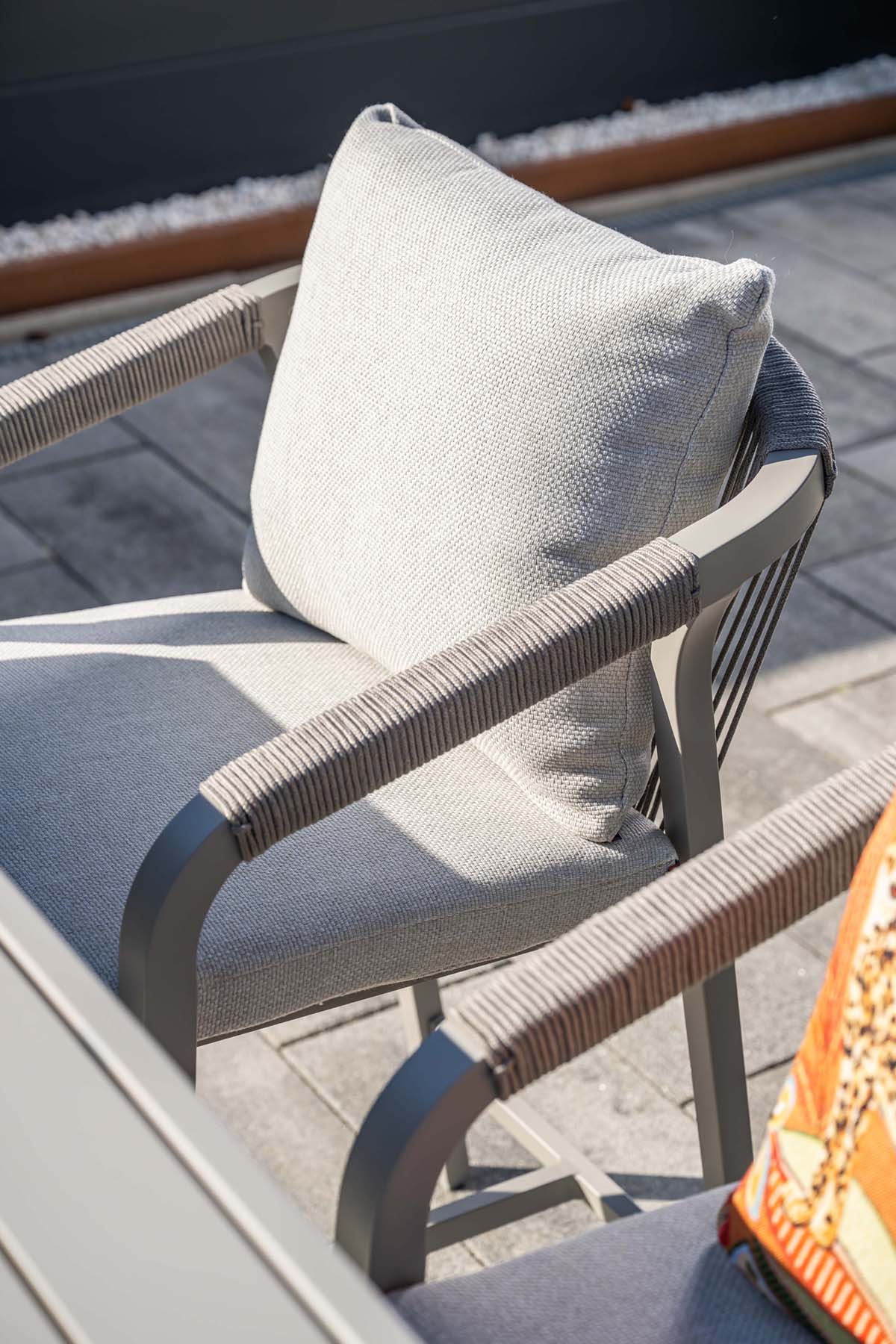De Monti barset is gemaakt van een lichtgewicht, aluminium frame, die voorzien is van een beschermende laag poedercoating. De rug- en armleuningen zijn afgewerkt met stijlvol, handgeweven rope. Het rope is gemaakt van solution dyed polyester met een rubberen kern. Dit materiaal is gekozen voor zijn duurzaamheid, kleurvastheid en zijn weerbestendigheid.